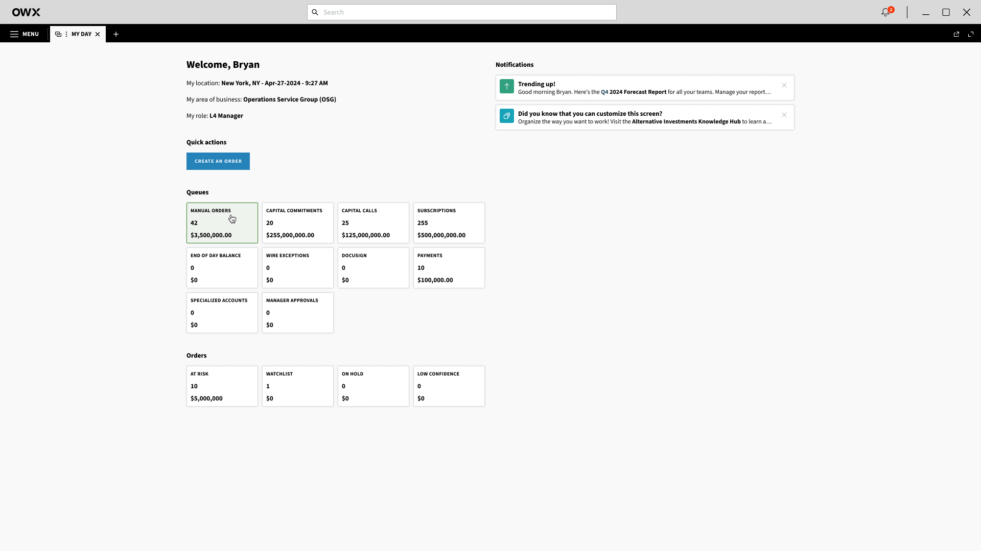 STEP THREE: User is presented actionable data and Order automatically organized into queues to begin processing workflow immediately