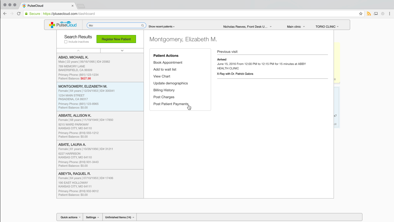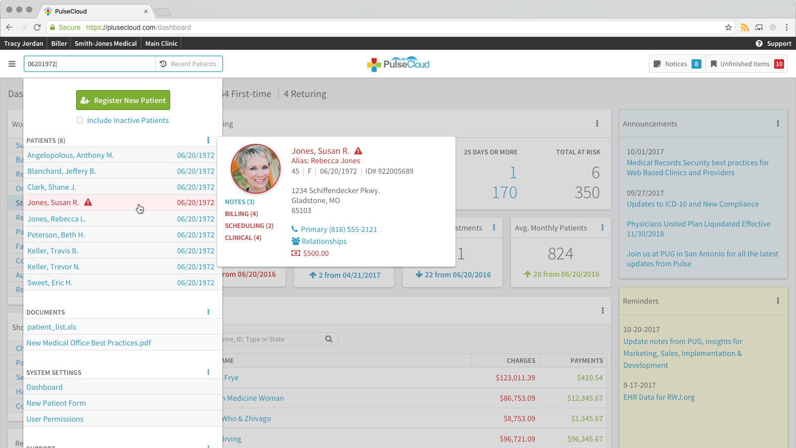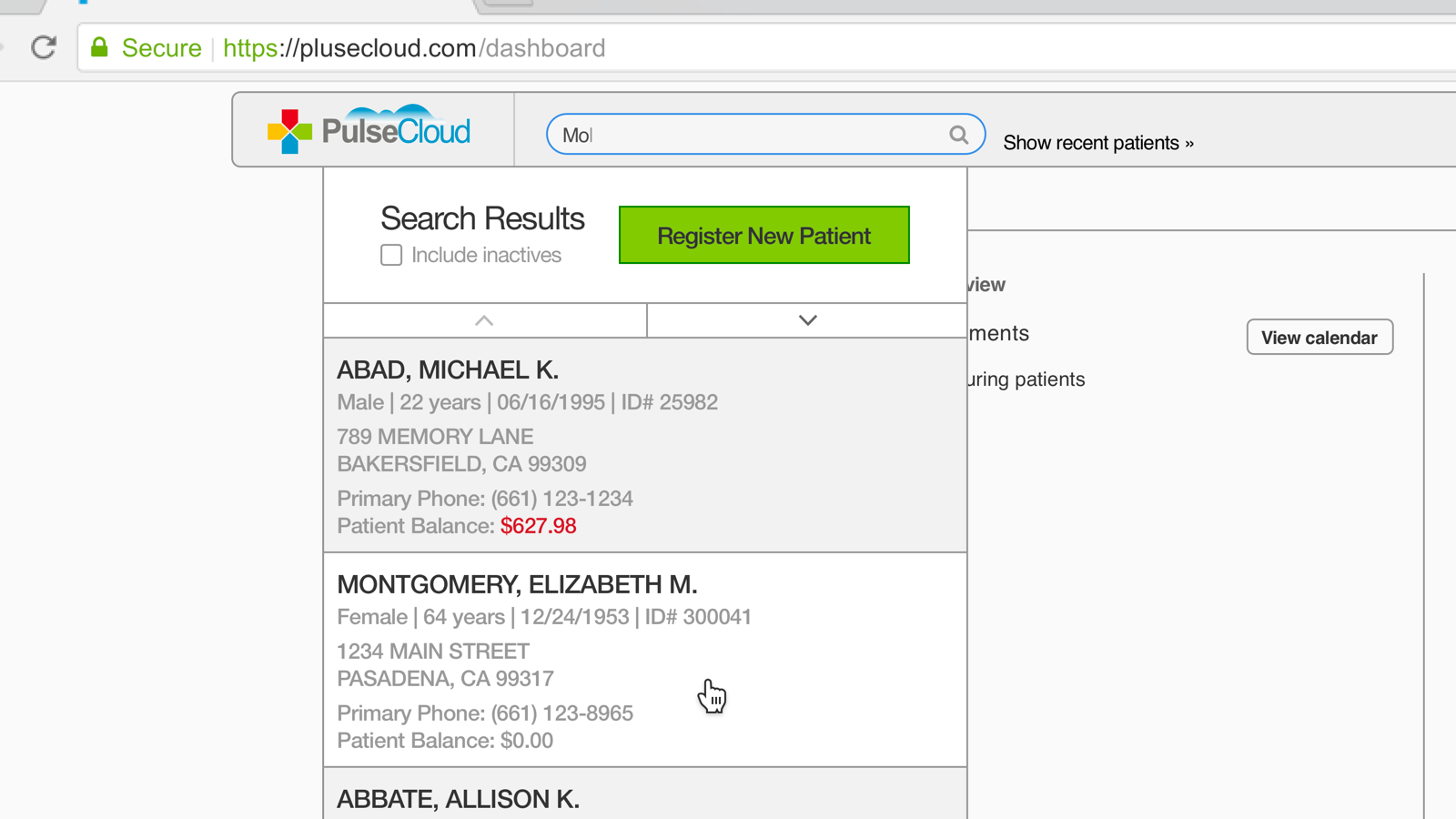 AFTER: Search results now has many more patients with cards that show upon hover.